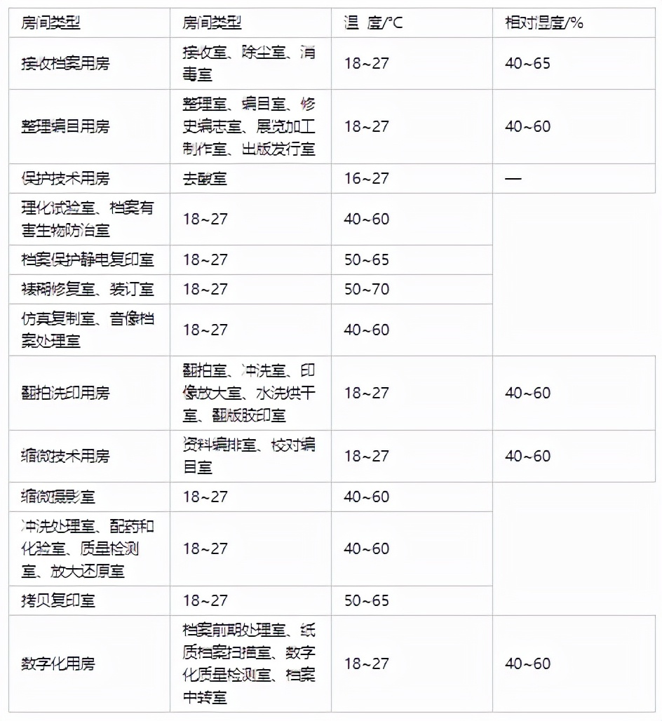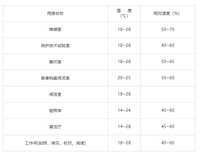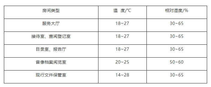 9、档案业务和技术用房温湿度要求