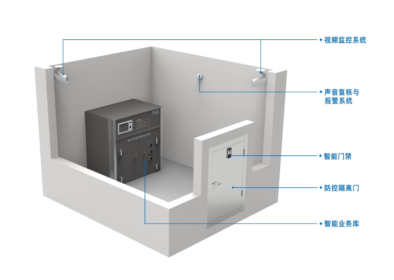 数字经济时代,新一代信息技术正在推动多领域技术的交叉融合和创新,银行业纷纷布局数字化转型,以迎接新的业务形态和新的技术发展带来的重大机遇和挑战。智能银行业务库的存在缓解了银行网点安全智能化管控的压力。
